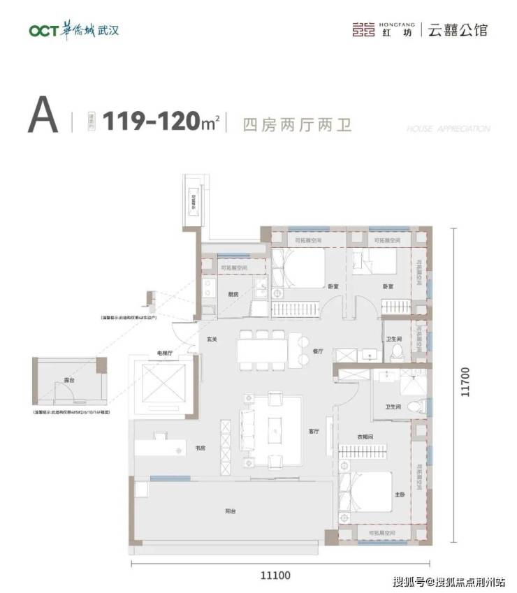 项目首开预计会放出建面约120㎡四房两厅两卫产品