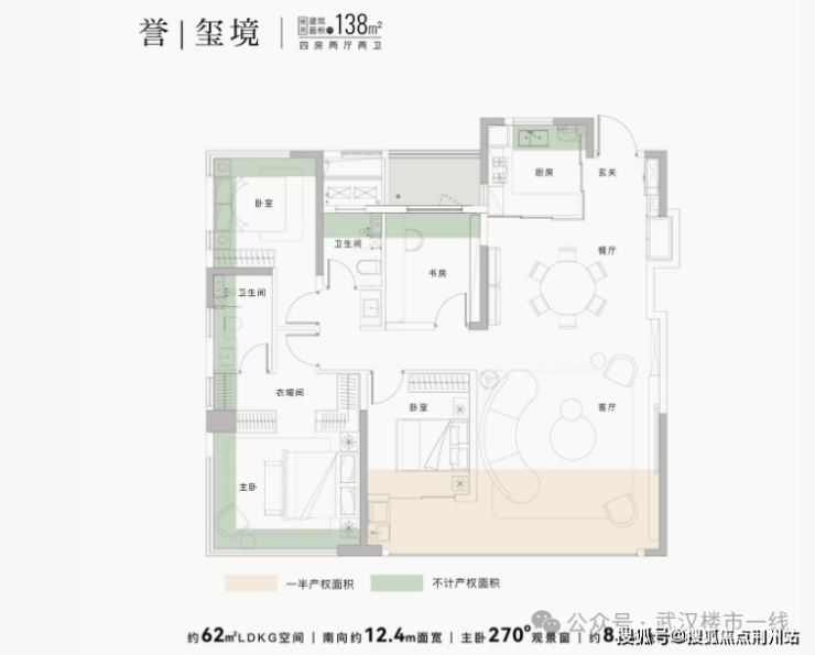 建面约138㎡四房,四房加上约62㎡LDKG公区空间,主卧也有270°转角飘窗,看起来有差不多180平左右那么大。