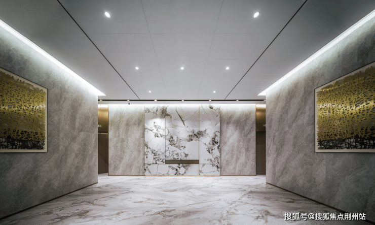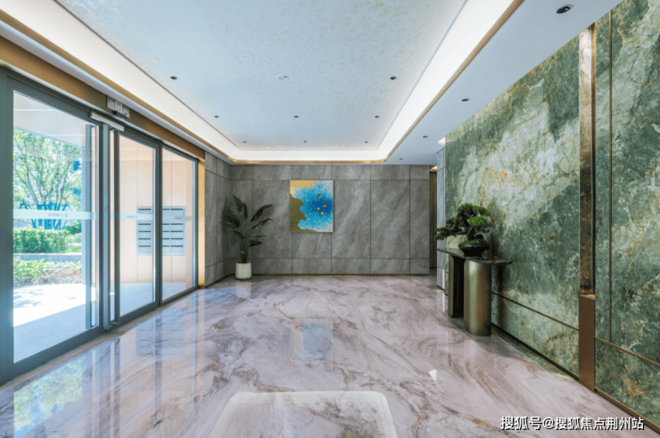 地上、地下入户大堂均为酒店式归家标准,采用诺贝尔门店同款的大理玉石岩板搭配连纹的设计。