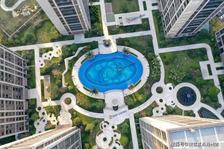 园林中央区域设计了武林壹号同款室外蓝宝石泳池,绿植部分大量采用滨江较为常用的堆坡结构,立体感强,开敞式园林设计的精致前卫,让人眼前一亮。