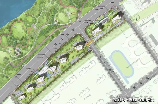 值得一提的是,项目被三弓路隔离成了两个地块,其中东侧地块仅2栋楼。且两个地块有独立的大门入口,都位于临江大道边上。