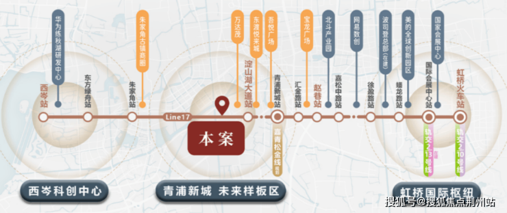 项目位于青浦新城“未来新城样板区”,紧邻华为研发中心,距离地铁17号线淀山湖大道站约800米,3站直达华为练秋湖研发中心,8站可达虹桥商务区,交通便利,产业资源丰富。