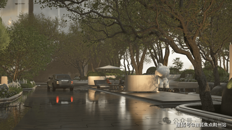 利用地库整体抬升2.5-2.7米,形成场地高差,创造出4层观江会所与3层架空花园的独特空间效果,以超前手法重构“一楼一岛景、浮岛花园”的独特居住体验。