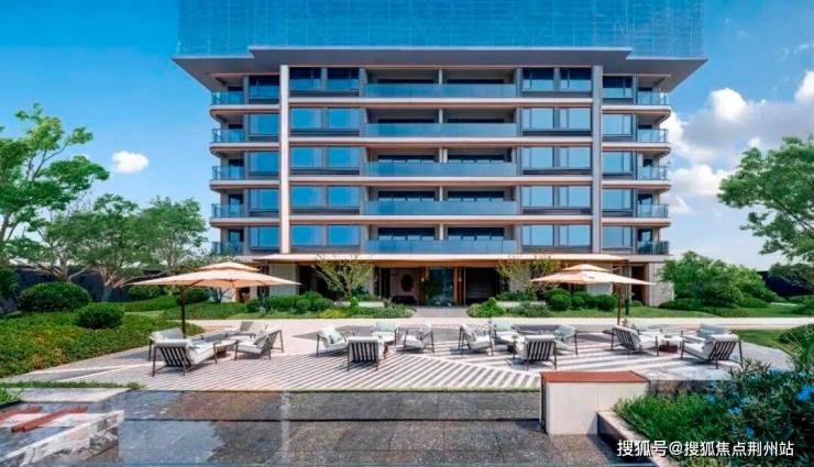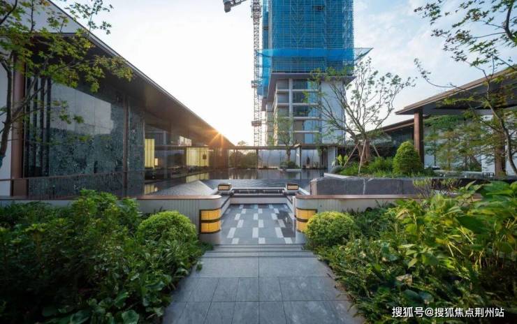 顺着示范区主入口大门旁边的游廊往里走,然后穿过归家大堂,入眼的便是大片的镜面摩登水院,涌泉叠水,高低错落、动静相宜。水院里的下沉式卡座,让原本只能近观的水景,多了一份走入体验的可能,任身体依偎在水色画境里,任心情随着柔波荡漾,享受度假般的松弛感。与摩登水院相连的是定制级热带景观泳池,援引度假酒店设计理念,泳池旁选种6棵“热带贵族”加拿利海枣树,并用肾蕨、大吴风草等热带植物加以渲染,一年四季流转出不同的风景,打造出独特的热带风情。