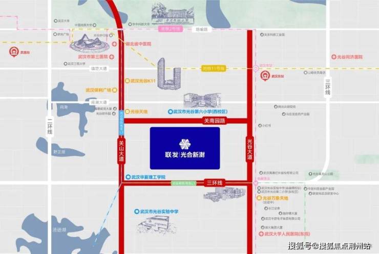 医疗: 1.09km三医院(光谷院区)、1.66km湖北省中医院(光谷院区)、4.2km同济医院(光谷院区)、3.8km武汉大学人民医院东院