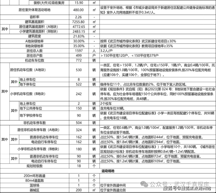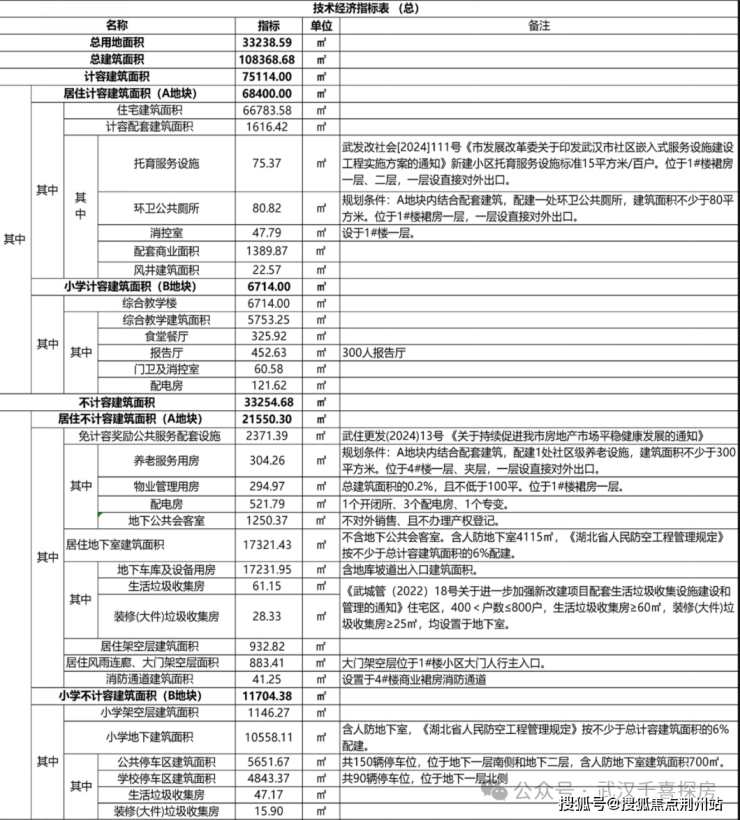 1.项目占地33,241平方米,其中A地块(小学)6,714㎡,B地块(住宅)68,400㎡。容积率:约2.26,车位配比1:1.54.包含二类居住用地(21,643㎡)、公园绿地(3,129㎡)和中小学用地(8,469㎡)。
