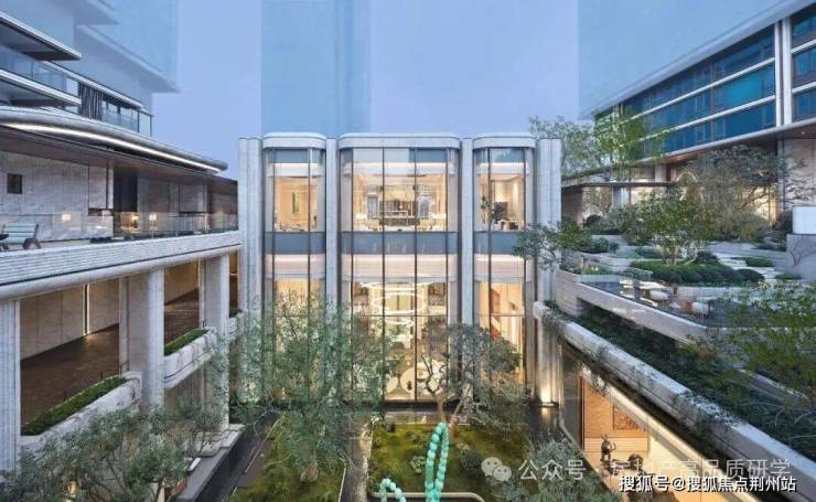 建筑设计延续绿城“经典海派美学”,外立面采用四面铝板,公建化封包阳台,大面积玻璃与金属线条相结合,以石材搭配大面积玻璃幕墙,既显高端大气,又能历久弥新,从外观到内里都符合改善客对“品质住宅”的期待。