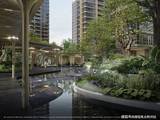 外立面采用四面铝板+巨幅玻璃窗墙的组合,主入口设计极具仪式感,约60米宽的门庭、百年罗汉松、融合良渚玉琮与西湖水韵的纹样。园林设计撷取南宋《四景山水图》意境,营造“一轴八境”;其核心亮点是约1500㎡的下沉式主题会所,内部配置了恒温泳池、健身房、SPA、私宴厅及茶室等,直面下沉庭院景观,将高端酒店式的生活方式引入社区。