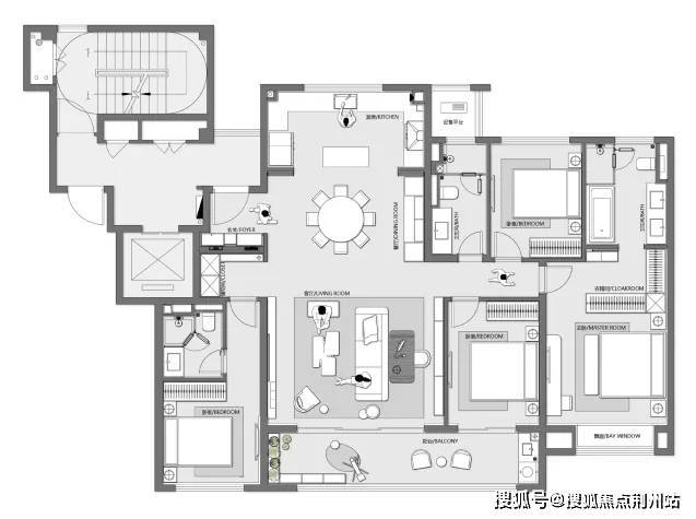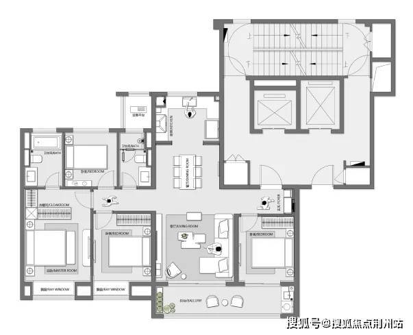 双套房设计,父母套房和主人套房,分开互不干扰,又能满足照顾老人的居住需求,规避了一房三代同堂的困扰。