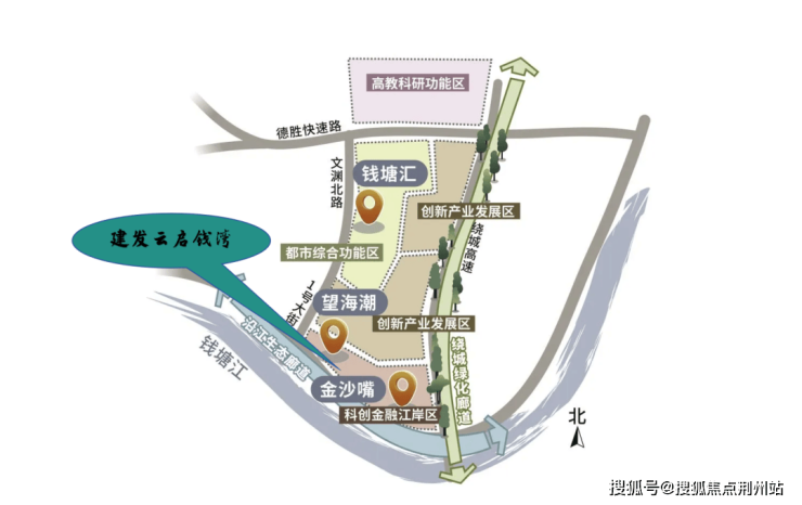 城市地标的密集度,在一定程度上也是板块能级和发展侧重的剧透,这就意味着,金沙嘴板块将成为东部湾新城乃至整个钱塘未来最有分量的板块之一。
