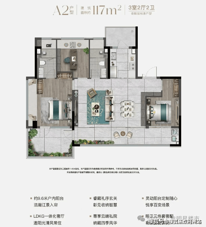 客厅开间约6.6米,客厅连接阳台可实现近40㎡方厅。露台+设备平台+多飘窗+南向双阳台等赠送面积超多,空间使用率近100%。
