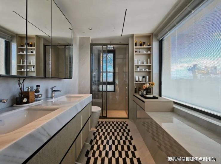 卫生间侧面的飘窗也有非常大面的采光,可以用来放置一些化妆品收纳等功能。