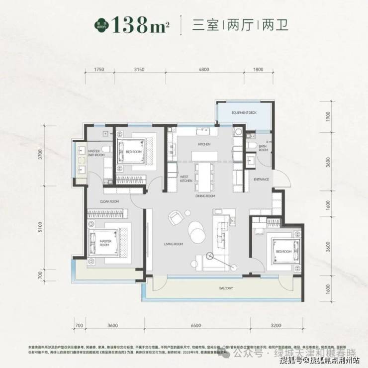 宽厅 LDKB 一体化:约6.5m 奢阔宽厅、餐厨与 约9.7m开敞阳台串联,空间联动性强;