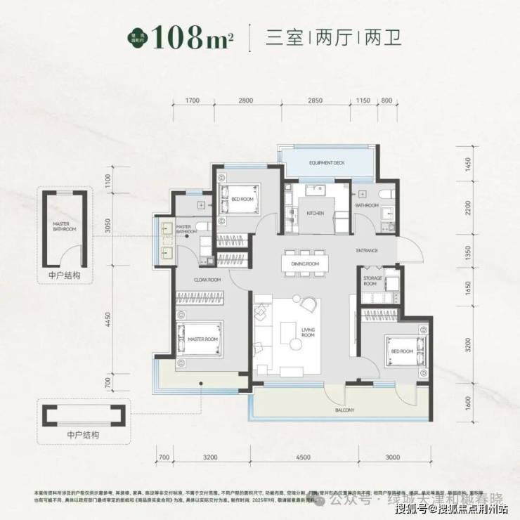 108㎡「雅庭」以 “紧凑不局促、功能全到位” 为原则,在三房两卫格局中,平衡收纳、互动与私密,适配从二人世界到三口之家的首置进阶需求。