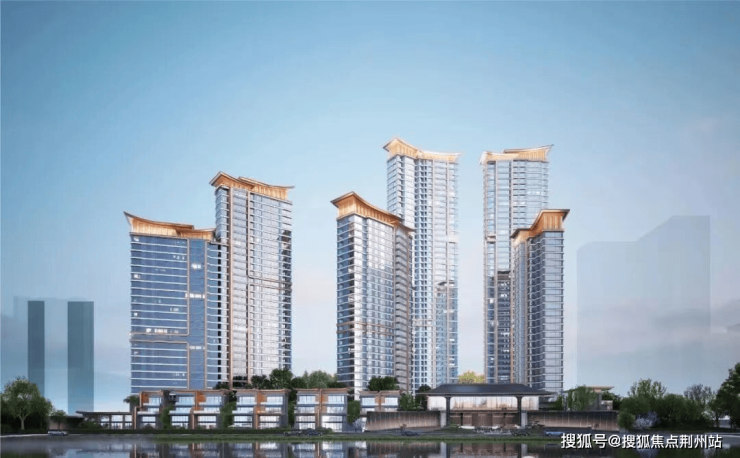 建发·望湖的建筑立面采用铝板及石材,主体立面以水平线条为框架,取法华夏都城的建筑礼仪,如翼轻盈的飞檐塔冠,挑起一线沙湖的天际脊梁,展现出专属于沙湖的东方美学,焕新武汉建筑封面。