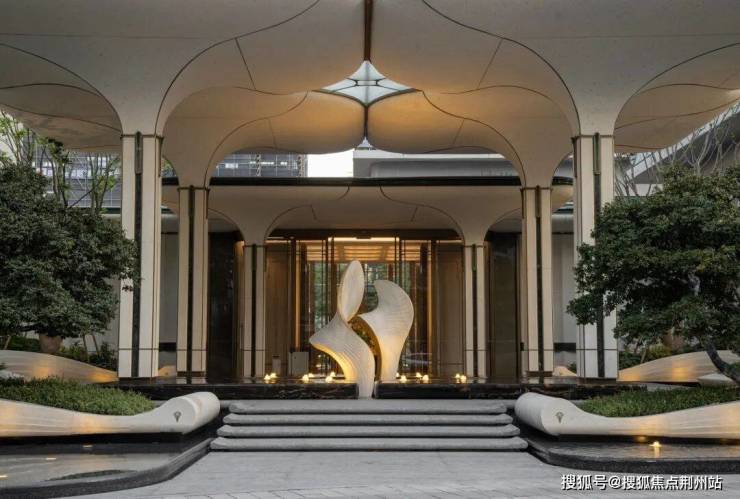 从玉树芳林主入口开始,乘月归廊串联起下沉庭院会所、恒温泳池和架空层休闲空间,沉浸式的归家动线,经典优美,每一步都像走在大地美术馆!