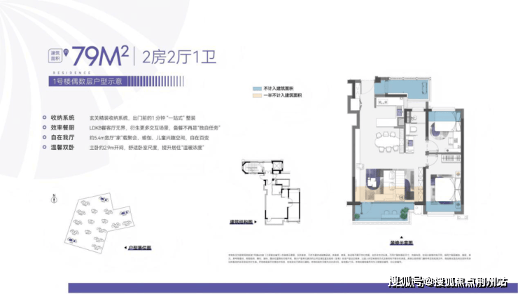 1、近16年未见的建面约79㎡全功能小户型样板间尺度震撼,约5.4米客厅开间,未来可打造2+X房,实际使用感受堪比常规建面约89㎡的户型;