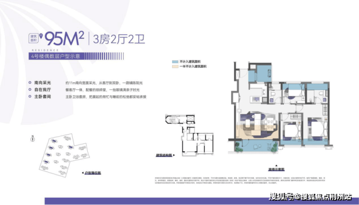 2、建面约95㎡户型则是软件谷区域内唯一做横厅三房的产品,不仅有约5.4米的灵活横厅,更有尺度舒适的大三房以及双卫设计,满足全龄段家庭成长需求;