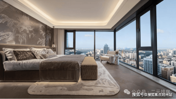 项目采用的是三段式设计,采用类公建大面积玻璃幕墙,搭配金属铝板和真石漆涂料,顶部采用鎏金塔冠造型,第一眼就很惊艳。