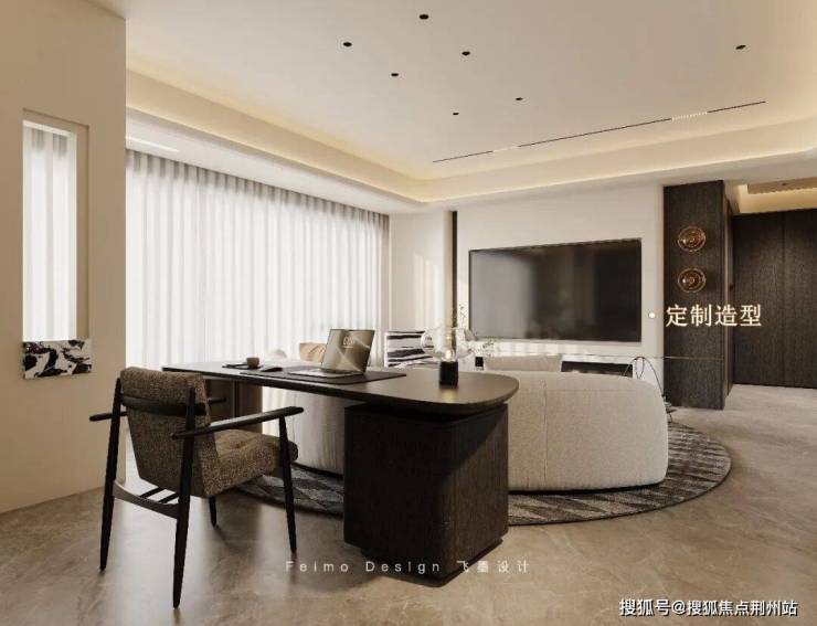 ②电视背景墙定制曲面造型,点缀护墙板装饰,丰满家居颜值。