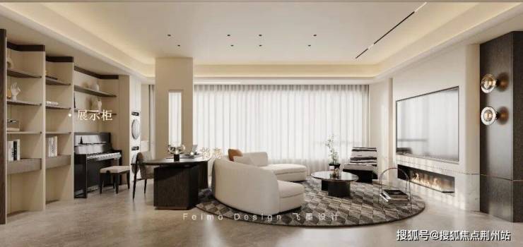 ③书房定制整墙展示柜,预留钢琴区,实现功能的多样化。