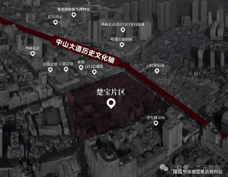 武汉城建·楚宝里项目位于汉口历史风貌区核心地段,中山大道与前进二路交叉口,正望百年民众乐园的鎏金岁月,毗邻国广恒隆、M+商圈等商业中心,以23万方里分综合体,倾力打造的文商旅居于一体的综合性城市更新示范区。