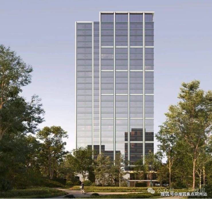 从楼栋效果图可以看出,光谷润璟是公建化外立面,大面积的玻璃幕墙,被体积感明显的粗线条分割,整体造型非常现代化,类似于5A级写字楼。