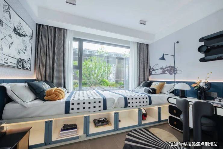 什么概念?两张标准儿童床一起放,还能留出走道空间。二宝各睡各的,不用挤上下铺,也不用担心翻身掉下来,这个房间足够陪伴两个孩子长大。