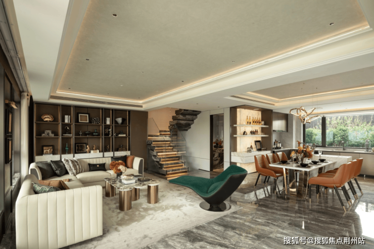 外立面更选用卢浮宫同款,曾运用于国内亿元级豪宅立面上的奢石——卢浮米黄,造价高昂,质感奢华,而且国内将卢浮米黄用于叠墅外立面的项目,惟乾庚·和玺。毫无疑问,这就是身份与品位的代言。
