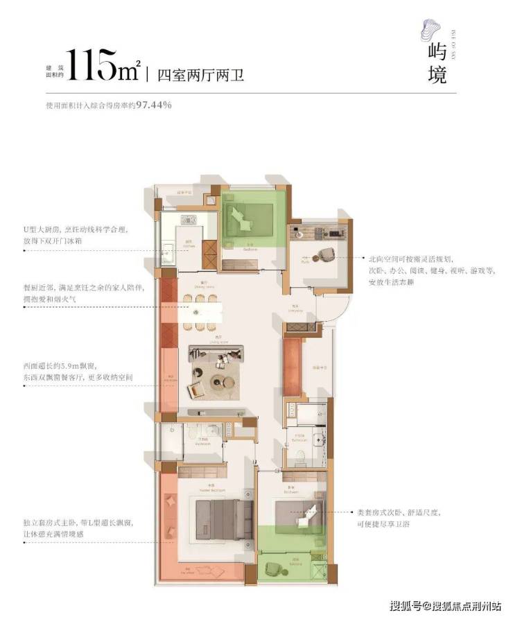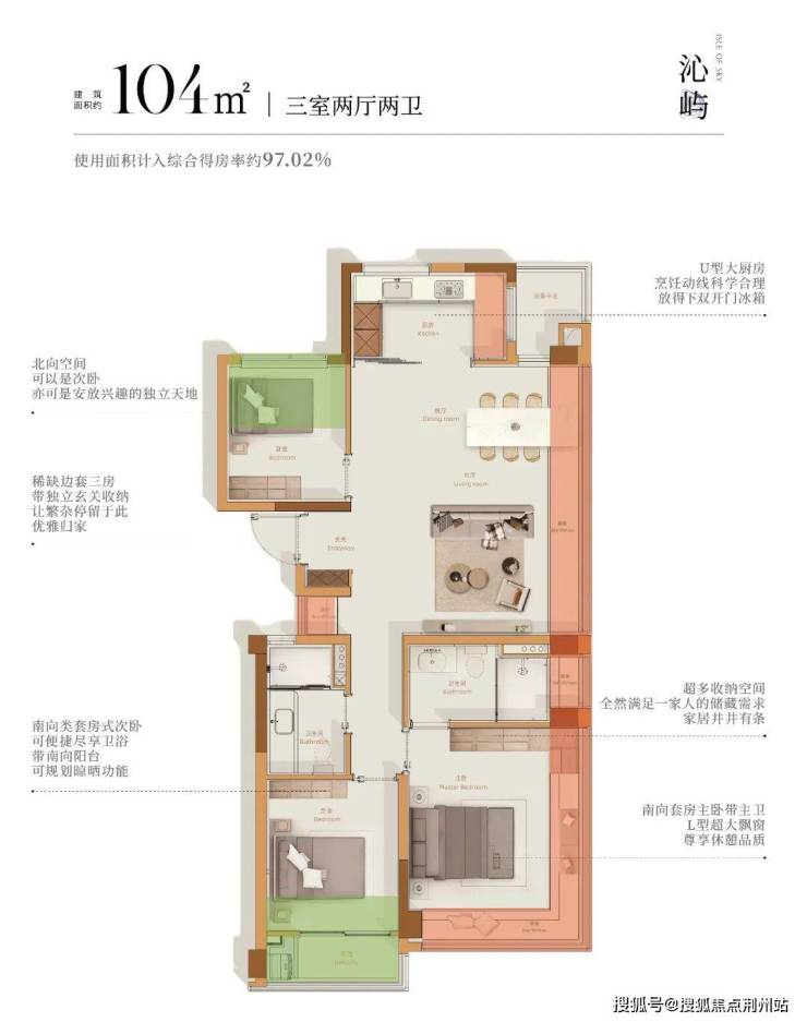 大量赠送面积的拓展,使其拥有约97.44%的超高得房率,堪比市场面主流约150㎡+户型的实用空间。