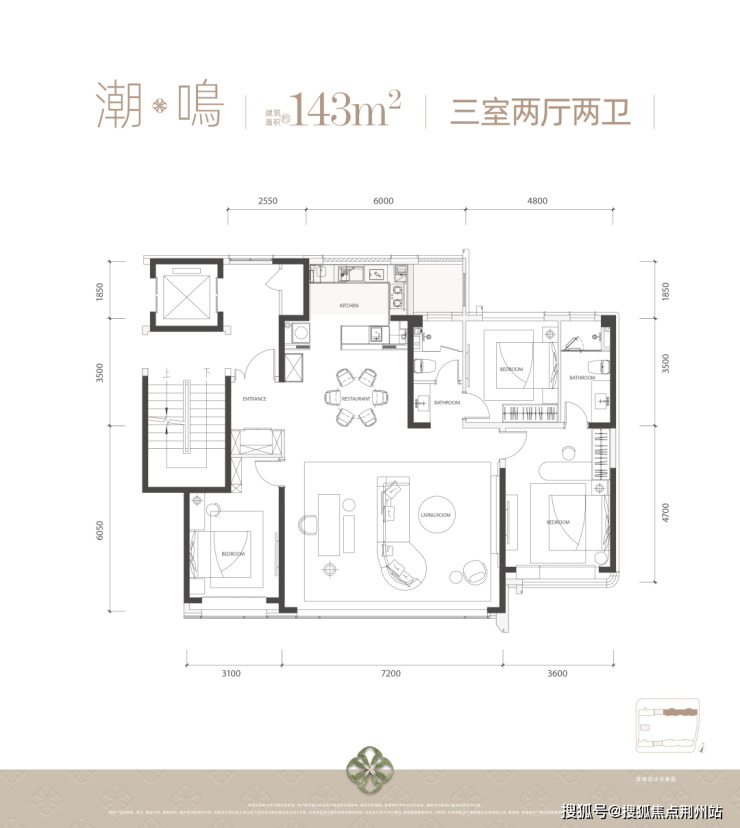 建面约 143㎡三室两厅两卫,套内实得面积约 130㎡,实际出房率约 92%,约7.2 米巨幕落地窗搭配 LDK 阔绰中心场域,中西双厨设计 , 承载品质改善生活。