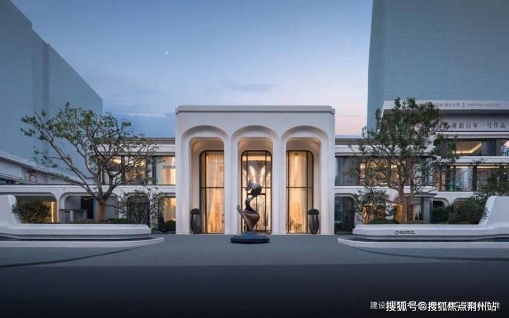 拱券门廊造型溯源礼查饭店“孔雀廊”灵感,融合路易斯·康金贝尔美术馆“金贝尔拱”的国际美学灵感,以三心拱几何美学,构筑恒定不朽的几何之美。拱廊造型以白色美术馆质感,为CBD注入百年隽永的人居表情。