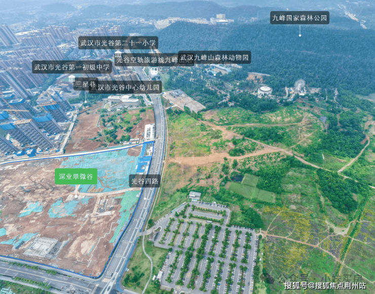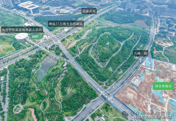 深业翠微谷位于东湖高新区高新大道以北,九峰一路与光谷四路交汇处,属于光谷中心城北区。