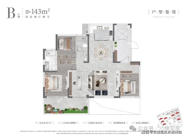 2、建面约125-240平户型亮相,得房率94.6%起比较优秀,设计相对中规中矩