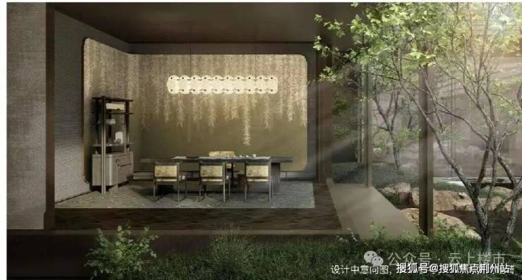 融入门庭引水、庭院围水、悬玉生水、重檐聚水等意境,并将月、潮、影等东方美学意象,进行当代转译,重溯东方屋檐建筑之美;提取蜀山先照寺重檐叠韵之形,萧山水脉清澜鎏金之色,萧博青瓷玉润流光之质,定制专属于萧山的逸庐之美。