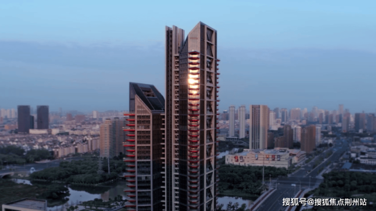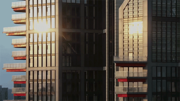 阳光照耀在甬新河与后塘河,河流用它的律动摇碎光芒,再投影到帝宝,落地玻璃上、阳台顶部摇曳的金色线条像是财源滚滚的金色吉兆。