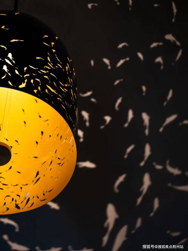 天青色汝窑瓷板饰面取太湖烟雨之色,非遗金属抬凿錾刻装饰复刻太湖渔文化,“瑞鱼旋舞”吊灯源自苏州非遗鱼灯,苏扇元素石材拼花铺陈地面,每一处细节都在诉说太湖故事。皇家级车马厅墙面采用黑金纹大理石拼接,洽谈区金漆弧顶造型源自苏州石拱桥,华贵中见文雅。
