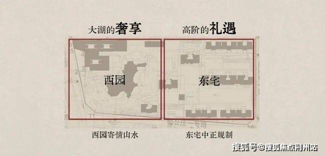 规划布局承皇家府院型制——东宅(前府)西园(后园)。东宅奢阔藏风照水,西园风华怡情自然。