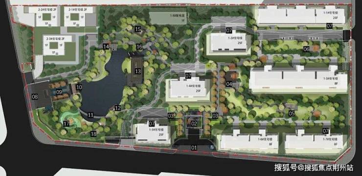 项目占地面积3.96万㎡,地上建筑面积约8.71万㎡。因有地铁线路穿越用地,设计师以大胆极致的规划手法,师法皇家园囿,在用地内造一片湖、兴一座园,让景观成为项目中的绝对主角。