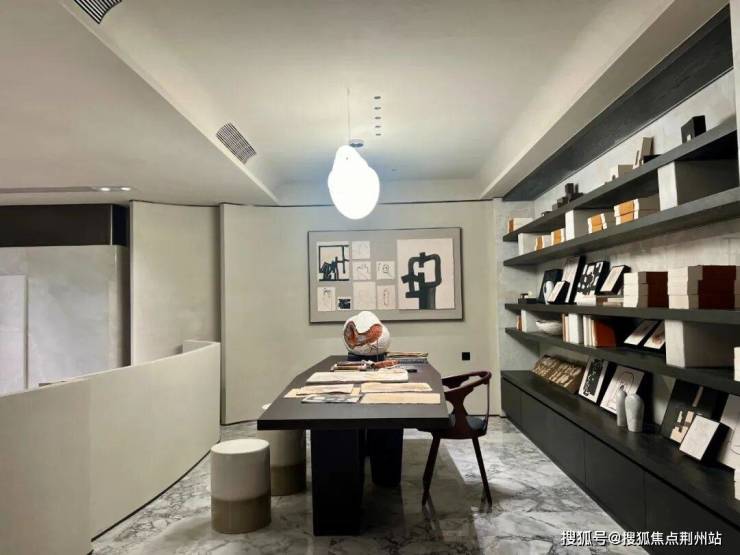 “我们选择深黑咖木饰面,是因为它的沉稳能够平衡浅米灰色的轻盈,同时木质本身的天然纹理又能与艺术漆的砂感形成呼应,”负责该样板房的设计师解释说,“这种搭配既现代又永恒,不会随着潮流逝去而显得过时。”