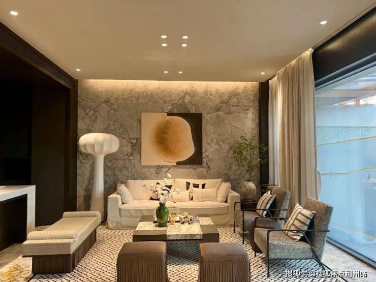 在凤栖云庐的四代宅样板间中,这种**光影与材质的互动**被发挥到极致——白天,自然光透过宽大的玻璃窗洒入室内,墙面呈现出细腻的变化;夜晚,人工照明则创造出一种亲密而舒适的包裹感。