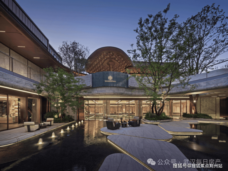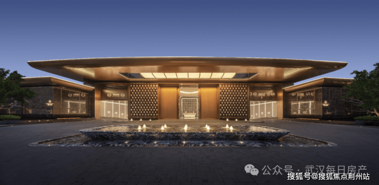 项目的建筑立面是非常有辨识度的,整体采用“鎏金冠冕”公建化设计,造型灵感来源于黄鹤楼的飞檐和长江的风帆。