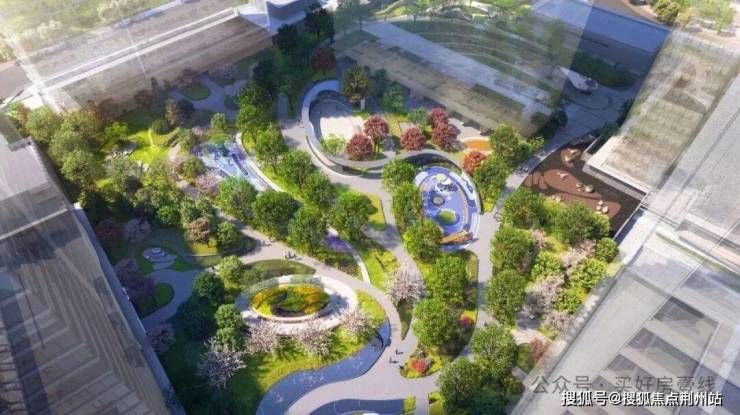 🔘由iPD园林执笔,锻造超3万方「两心一环五点」S级超流线型园林,打造集赏景、娱乐、休憩为一体的全龄活动空间,约80*115米开合尺度,相当于一个标准足球场的园林面积。