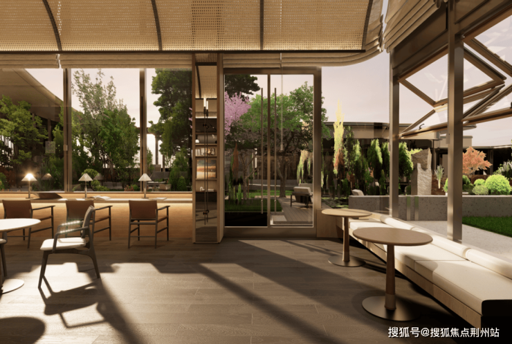 会所空间更像是从园林中生长出来,和自然无限融合比如,从礼仪盒子望出去,就可以观赏到园林大部全景