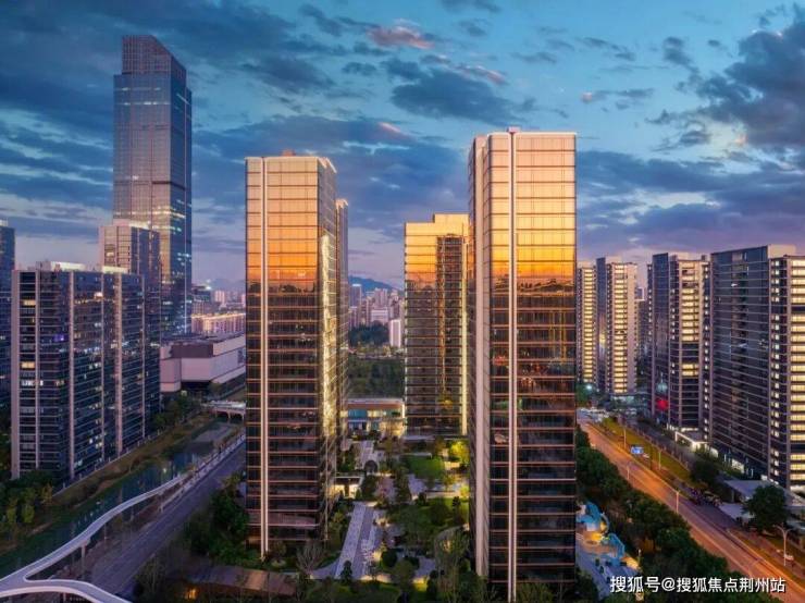 四栋百米高的鎏金建筑,由goa张晓晓创作设计,曲线折角、鎏金色系,和280米高的万象城互为映照,成为杭州城北当之无愧的地标建筑群。