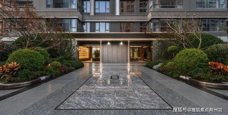在归家大门两侧的景墙处,选用了锦绣山河石材+星河灰仿石;在东侧归家轴线处,增加了青铜金拉丝金属和仿铜金属细;在入户的铺装上,臻选浪淘沙、夜里雪仿奢石大板砖、镶嵌仿铜地雕,全域奢材应用,一步一履间,启幕尊荣的归家序曲。