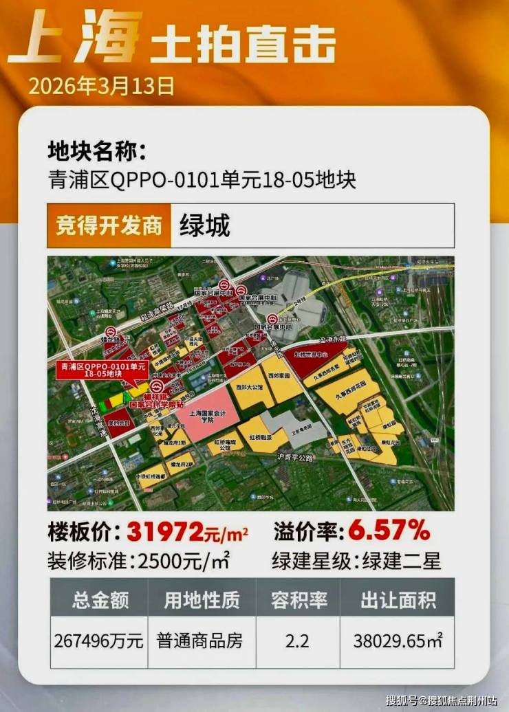 地块信息:2026年3月13日竞得,总价26.75亿元,楼面价31972元/㎡,溢价率6.57%