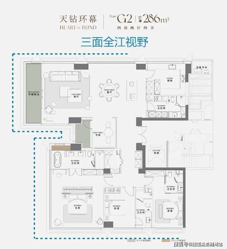 澐启滨江「天钻环幕286」-上海滨江大平层的终极形态,堪称2025年上海楼市难得三面瞰江的滨江头排藏品。