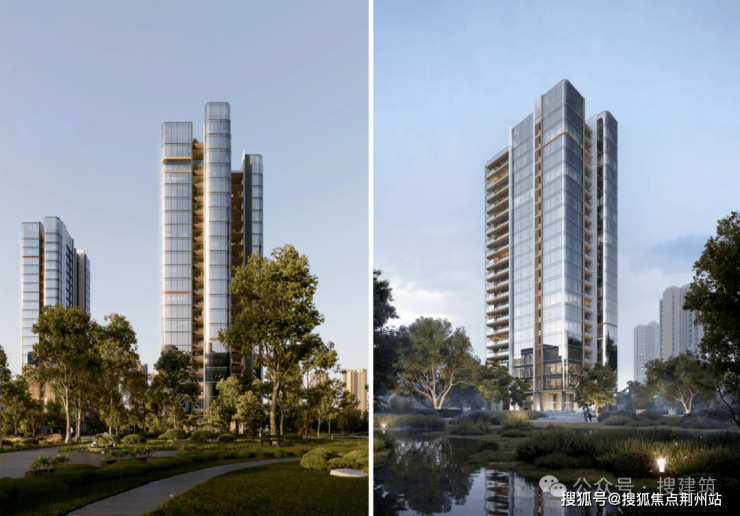 宁波首个金釉陶板立面——宁波保利·明湖金茂府,搜建筑认为这个项目的外立面可谓是花尽了心思,“金釉陶板”与“冰川瀑布玻璃”1:0.5的融合运用,完美演绎着国际范十足的东方作品。