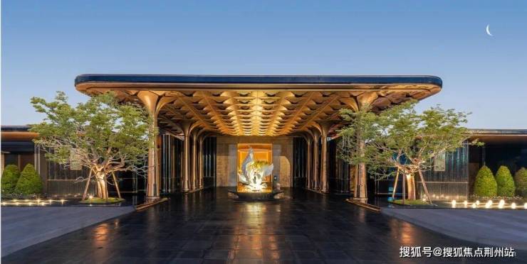 入口阔绰门庭气派迎宾,恢弘界面极具昭示性;二进沁香庭院植栽寓意美好的果石榴,天光与自然的交融舒缓归家心绪。下沉庭院作为核心景观节点,悬挑瀑布飞溅,打造声、光、影、植交互的沉浸式体验空间,创造包裹感极强的静谧领域。